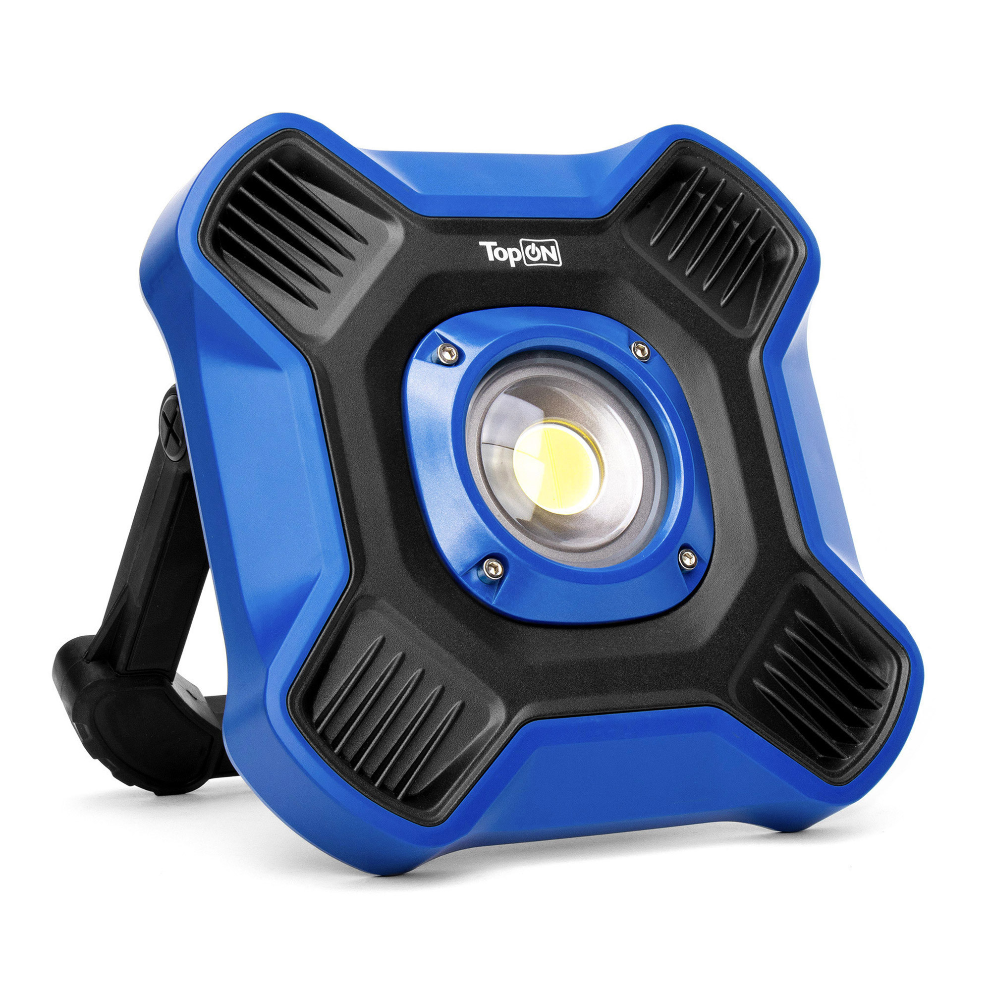 Прочный корпус из анодированного алюминия и ударопрочного ABS с водозащитой IPX4 защитит фонарь от неблагоприятных условий. Встроенный аккумулятор обеспечит непрерывную работу фонаря более 3 часов. На корпусе размещена подставка с поворотным на 180° механизмом для удобного размещения. В подставке предусмотрено отверстие для крепления на штатив или стойку. Для зарядки гаджетов есть встроенный USB-порт с функцией PowerBank. Емкость в режиме PowerBank составляет 12000mAh. Фонарь работает и заряжается от сети через блок питания (16.8V~1.5A), так же можно использовать внешние аккумуляторы и солнечные панели TopON. В комплекте блок питания с кабелем 5 м.