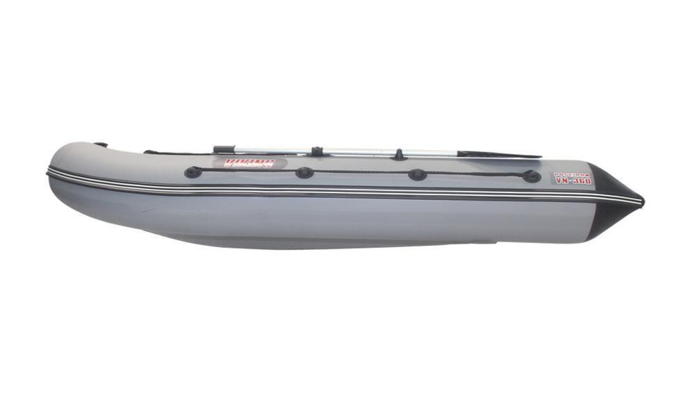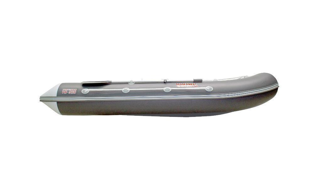 Модель лодки ПВХ «Викинг» 360 PRO разрабатывалась на основании хорошо зарекомендовавшей себя Касатки 385 Marine. В итоге впервые лодка лайт-класса получила днище с высоким гидродинамическим качеством за счет повышенной килеватости как в миделе, так и на транце.