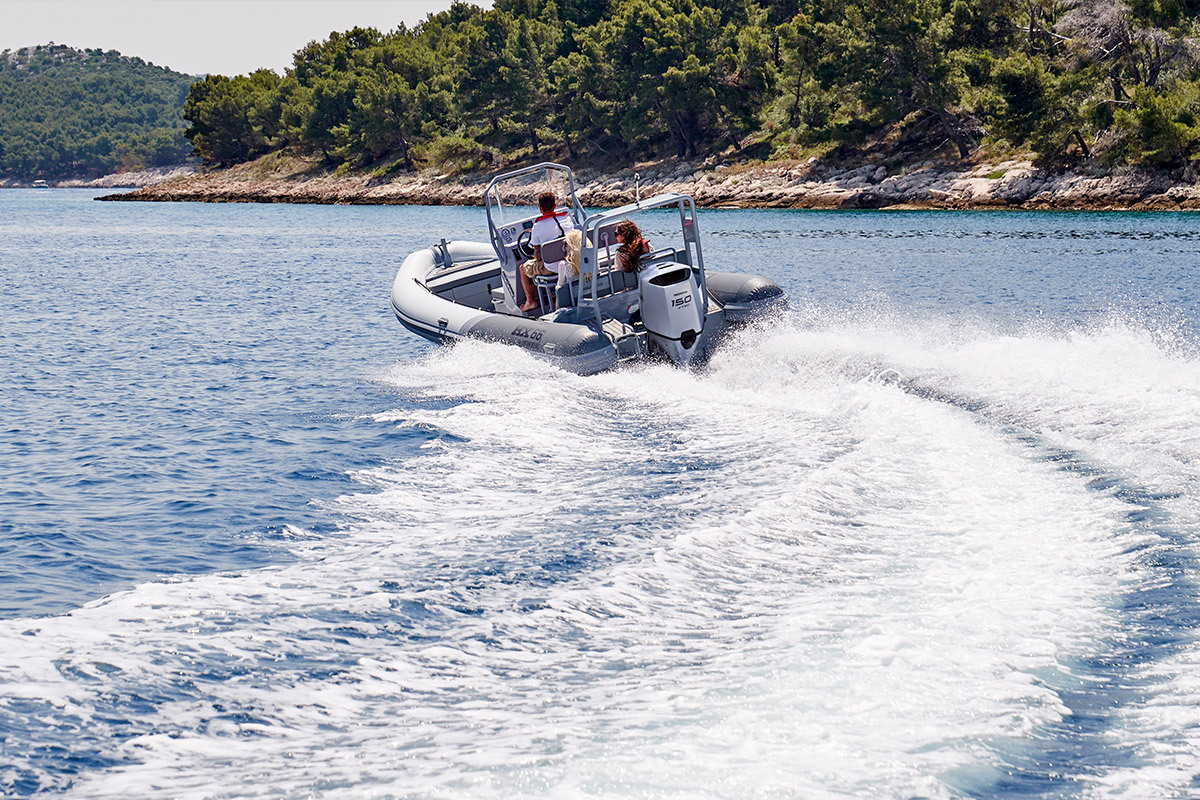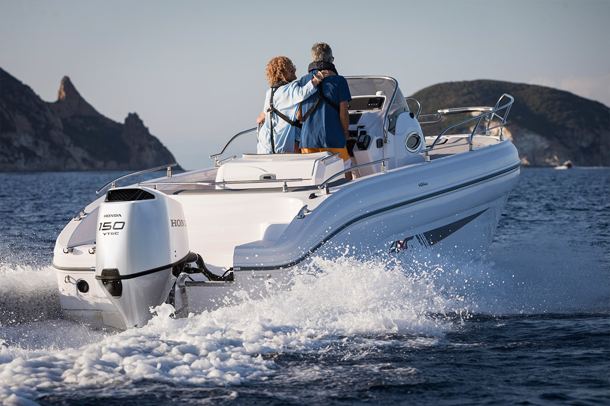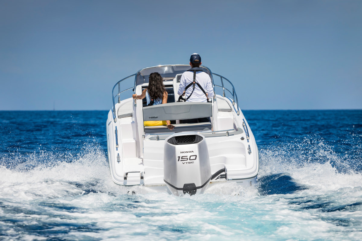 - Двигатель: 4-тактный с водяным охлаждением OHC, 2.354 см³, 4-цилиндровый, 150 л. с. (110,3 кВт) при 6000 об/Мин. с системой VTEC™ (максимальная мощность во всем диапазоне оборотов двигателя), программируемый электронный впрыск топлива (PGM-FI), выхлоп в воду через ступицу винта