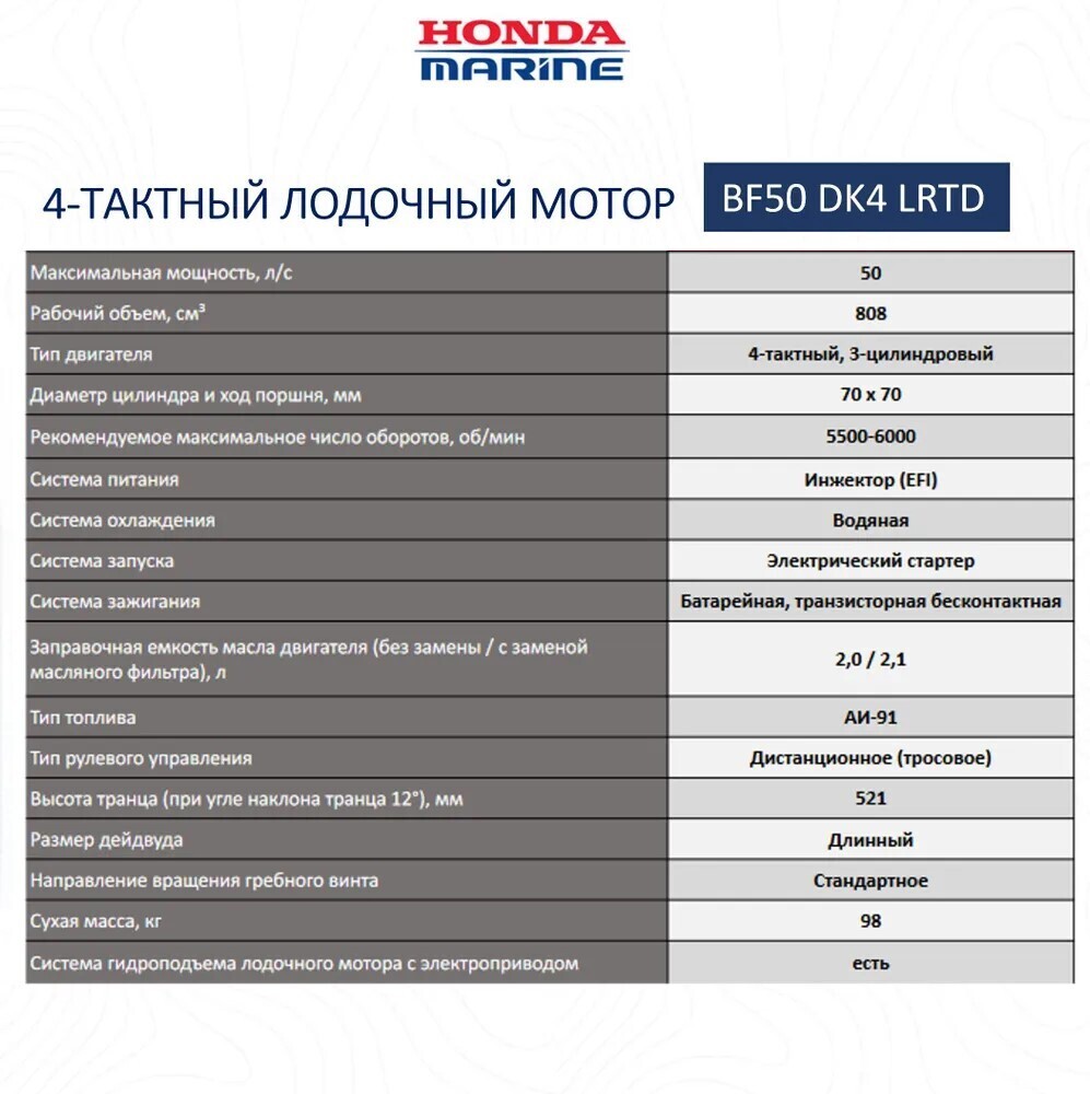 - Расшифровка кода модели LRTD: L - длинный дейдвуд; R - дистанционное управление; T - гидравлическая система регулировки наклона и подъема лодочного мотора; D - общий экспорт.