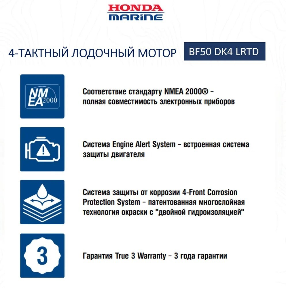 Подвесные моторы BF60, BF50 и BF40 являются самыми легкими и компактными в своем классе. Это выдающееся семейство 4-тактных двигателей оснащено множеством инновационных технологий Honda.