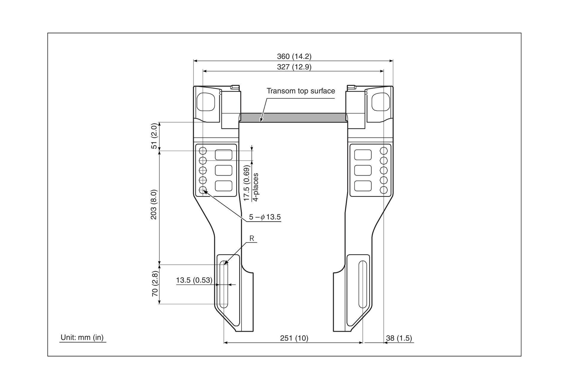 Транец плавсредства | 508 мм |