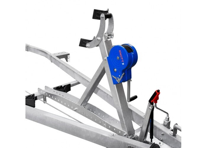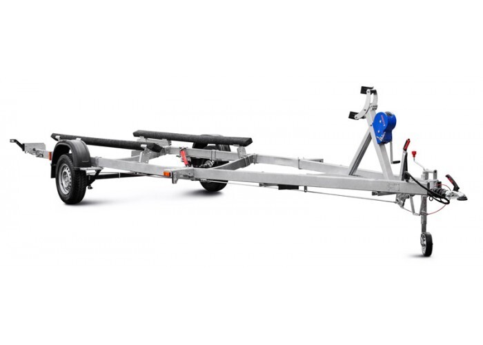 ● Передвижной носовой упор имеет регулируемую высоту и угол наклона. Он может быть отрегулирован и установлен в наиболее удобное положение для установки перевозимой техники. Лебёдка облегчает погрузку техники на прицеп и страхует её при спуске на воду.