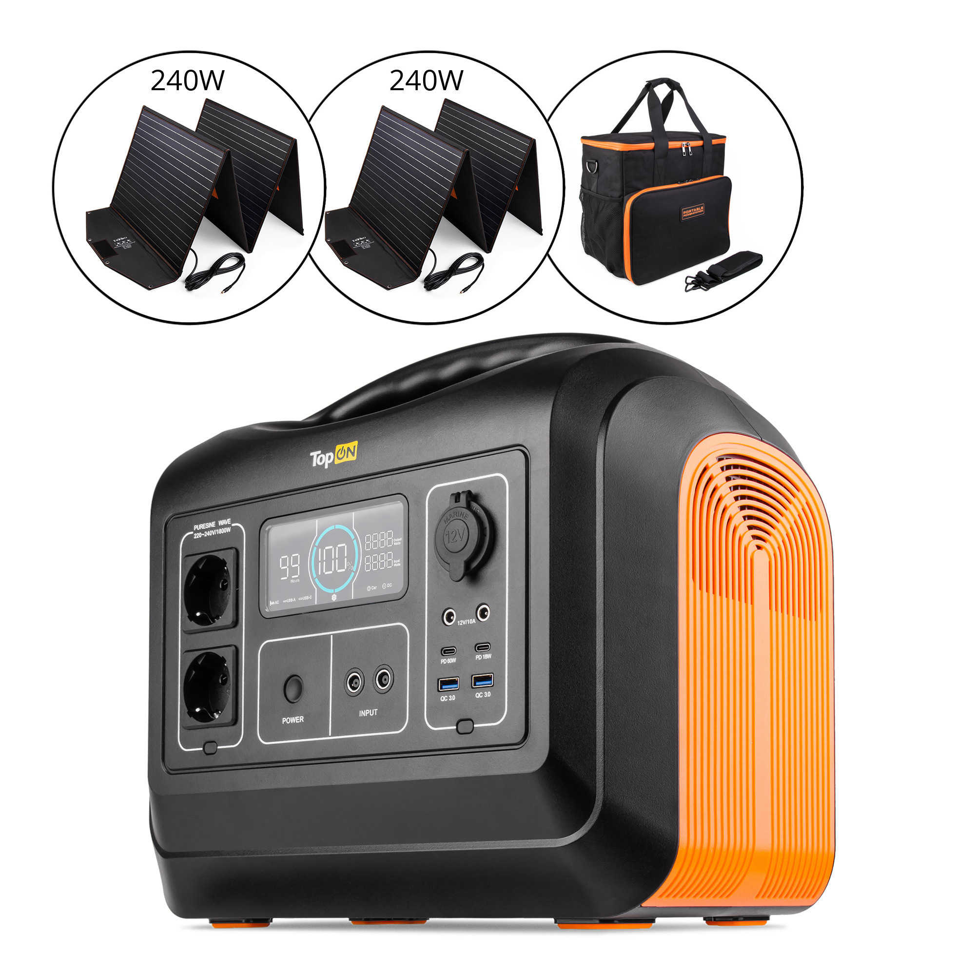 Портативная электростанция TopON TOP-X1800 незаменима для быстрой организации питания широкого спектра техники и электроприборов во время ремонтных и строительных работ, кемпинга и активного отдыха, охоты и рыбалки, длительных поездок и путешествий, фото и видео съемки, фестивалей, концертов и различных мероприятий. Подойдет для быстрой зарядки ноутбуков, планшетов, смартфонов, фото и видео камер, средств связи и навигации, индивидуальной мобильности, аккумуляторов для моделей, квадрокоптеров и дронов. Благодаря высокой емкости 1488Wh и надежным компонентам может использоваться в качестве автономного или аварийного источника электропитания.Для питания и зарядки техники есть 9 наиболее востребованных в повседневной жизни интерфейса: