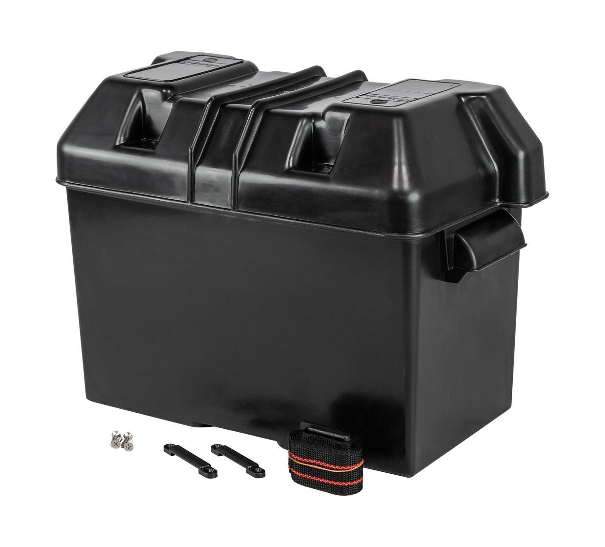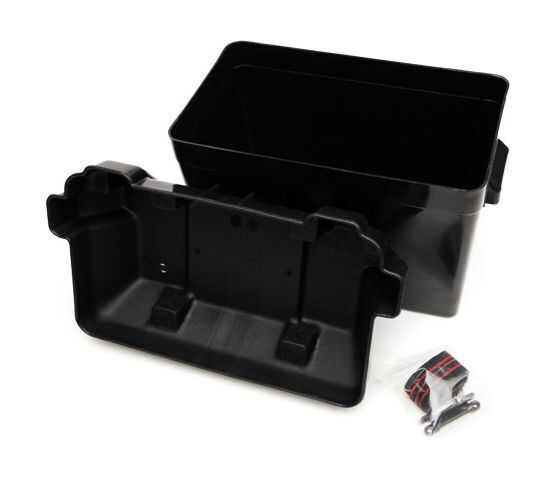 Коробка для аккумуляторной батареи. Изготовлена из химически стойкой пластмассы. Предназначена для транспортировки, хранения и эксплуатации аккумуляторных батарей. В комплект поставки входит крепежный ремень с фурнитурой.