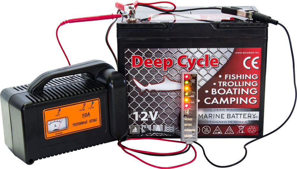 Зарядное устройство для тяговых аккумуляторов Сонар рекомендовано для заряда аккумуляторов Marine Deep Cycle AGM и GEL ёмкостью 75-80 А/ч, а также других тяговых свинцово-кислотных аккумуляторных батарей напряжением 12 В и ёмкостью 60-140 А/ч. Зарядное устройство полностью автоматизировано, защищено от переполюсовки и перегрузки с помощью встроенной электронной защиты.
